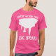 El color es muy bonito al natural, como la foto. El tejido es suave y de buena calidad. Sin defectos en el tintado, ni hilos sueltos o descosidos. Bien la impresión. Los bordes de las letras y el dibujo son nítidos, y el color contrasta muy bien con el de la camiseta.