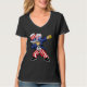 Camiseta con cuello en V de mujer, Negro, XL de adulto