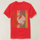 El color es muy bonito al natural, como la foto. El tejido es suave y de buena calidad. Sin defectos en el tintado, ni hilos sueltos o descosidos. Bien la impresión. Los bordes de las letras y el dibujo son nítidos, y el color contrasta muy bien con el de la camiseta.