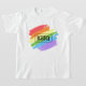 Esta obra de arte presenta un arcoiris colorido con las letras LGBTQ.