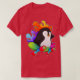 El color es muy bonito al natural, como la foto. El tejido es suave y de buena calidad. Sin defectos en el tintado, ni hilos sueltos o descosidos. Bien la impresión. Los bordes de las letras y el dibujo son nítidos, y el color contrasta muy bien con el de la camiseta.