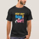 El color es muy bonito al natural, como la foto. El tejido es suave y de buena calidad. Sin defectos en el tintado, ni hilos sueltos o descosidos. Bien la impresión. Los bordes de las letras y el dibujo son nítidos, y el color contrasta muy bien con el de la camiseta.