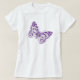 Papilio pintado de madera pintada con tinta gráfica, con camiseta estilizada de mariposa. La mujer pintada mariposa en morado, crema y gris. Muestra tu amor por esta hermosa y conocida mariposa. Dibujo original con tinta y color gráfico superpuesto de Sarah Trett.