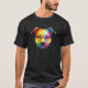 El color es muy bonito al natural, como la foto. El tejido es suave y de buena calidad. Sin defectos en el tintado, ni hilos sueltos o descosidos. Bien la impresión. Los bordes de las letras y el dibujo son nítidos, y el color contrasta muy bien con el de la camiseta.