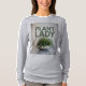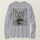 Esta camiseta presenta una elegante foto digital de producto de un helecho saludable en una moderna olla de cerámica de plata. La olla descansa sobre una superficie reflectante de plata metálica, creando un degradado sutil y reflejando la forma de la planta. Encima de la planta, las palabras Dama de la Planta se muestran en texto verde centralmente y encima de la olla. La camiseta es una camiseta básica para mujeres de manga larga.