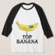 Diseño del " plátano superior". Un pequeño hombre soporta un plátano gigante que se coloca en las palabras "plátano superior". El término viene al parecer de argot de teatro, el plátano superior era el cómico en la cima de la cuenta en comparación con el segundo plátano que estaba en segundo lugar en la cuenta. Parece ser expresión popular actualmente, hace siempre que ríe. :)