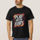 The “Play With Fury” t-shirt features cracked bold text, blazing flames, and athletic silhouettes mid-motion.