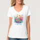 Camiseta con cuello en V de mujer, Negro, XL de adulto