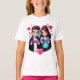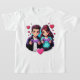 A romantic gaming couple holding controllers, surrounded by pixel hearts and neon lights. This design blends love and gaming culture, perfect for Valentine’s Day T-shirts and stickers made for true gamer couples.
