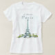 Esta camiseta de la parte superior de la cosecha incluye una pluma acuarela original y un dibujo de tinta de la Torre Eiffel con el texto "Yo elijo París". Obra original. Copyright Leah Wiedemer