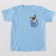 Camiseta azul claro de un chico divertido, con arte gráfico de un bolsillo con un cachorro dentro. Pocket Pug en texto gráfico decora el falso bolsillo.