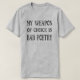 La mala poesía puede ser un arma muy poderosa. Tan poderoso que uno debe proclamarlo claramente, apasionadamente, fuerte y audazmente en una camiseta para que todos lo presencien. El diseño de la camiseta es un tipo de letra ornamentado en negro.