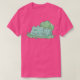 El color es muy bonito al natural, como la foto. El tejido es suave y de buena calidad. Sin defectos en el tintado, ni hilos sueltos o descosidos. Bien la impresión. Los bordes de las letras y el dibujo son nítidos, y el color contrasta muy bien con el de la camiseta.