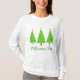 Tee en una versión moderna sobre un tema clásico del árbol de Navidad - tres árboles con polka verde limón sobre un fondo verde más profundo, con el texto "O Árbol de Navidad"