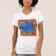 Este diseño es una ventana de ojos de buey. Se puede ver el ojo de buey hacia el océano azul más allá. La pared que la rodea es de madera. Este diseño de ventana de ojo de buey se ve genial en esta camiseta de Womens