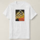 Una camiseta de manga corta para los hombres con un poster soviético de la propaganda del viejo estilo que ofrece la palabra CCCP, el emblema del martillo y de la hoz de la URSS y de una ciudad con los aviones de combate que vuelan por encima.