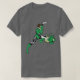 El color es muy bonito al natural, como la foto. El tejido es suave y de buena calidad. Sin defectos en el tintado, ni hilos sueltos o descosidos. Bien la impresión. Los bordes de las letras y el dibujo son nítidos, y el color contrasta muy bien con el de la camiseta.