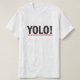 ¡Muestre a mundo cómo usted vive peligroso vida! ¡"YOLO! (pero sea práctico y reserva para el retiro)" camiseta. Negro en diseño rojo.