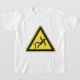Una advertencia frena el signo de un peatón con una persona cayendo sobre él. Este diseño parece realmente efectivo en esta camiseta de Chicas