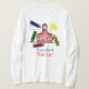 Una camiseta preescolar del profesor que ofrece una escena de la escuela que aparece haber sido coloreada por un niño con los creyones en rojo, amarillo, azul, y verde que rodean el ilustracion. La escuela es roja con los ilustraciones de la hierba, de una nube, y del sol que acentúa el diseño. El texto rojo lee al "profesor preescolar." El lado trasero ofrece un solo creyón rojo. Personalice con su nombre debajo del creyón. Busque los artículos a juego en "dibuja con creyón" la categoría de la escuela rosada.