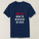 Pregúntame cómo inscribirme para votar por simples elecciones políticas patrióticas en rojo y azul, camisetas voluntarias para ayudar a registrar votantes. Minimalista y elegante diseño. Texto rojo y blanco sobre camisetas color azul marino editable. Unisex. Disponible en muchos colores y opciones de estilo.