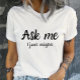 El diseño "Pregúntame, yo solo puedo" es un audaz y juguetón inicio de conversación, perfecto para eventos sociales o para atreverse a la gente a acercarse a ti. Fomenta la curiosidad y te invita a relacionarte con los demás.