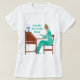 Esta camiseta personalizada para los escritores tiene una mirada de la plantilla del art déco del vintage. Una mujer negra en un vestido de las azules turquesas se sienta en un escritorio con la pluma aumentada mientras que una lámpara brilla al lado de ella. La mujer mira como ella es a partir del diecinueveavo o del comienzo del siglo XX. El diseño tiene una sensación estilizada moderna.