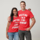 El color es muy bonito al natural, como la foto. El tejido es suave y de buena calidad. Sin defectos en el tintado, ni hilos sueltos o descosidos. Bien la impresión. Los bordes de las letras y el dibujo son nítidos, y el color contrasta muy bien con el de la camiseta.