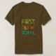 El color es muy bonito al natural, como la foto. El tejido es suave y de buena calidad. Sin defectos en el tintado, ni hilos sueltos o descosidos. Bien la impresión. Los bordes de las letras y el dibujo son nítidos, y el color contrasta muy bien con el de la camiseta.