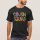 El color es muy bonito al natural, como la foto. El tejido es suave y de buena calidad. Sin defectos en el tintado, ni hilos sueltos o descosidos. Bien la impresión. Los bordes de las letras y el dibujo son nítidos, y el color contrasta muy bien con el de la camiseta.
