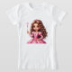 la joven princesa con vestido rosa, adornada con una tiara y joyería, sosteniendo una brillante varita mágica, evocando magia de cuento de hadas y elegancia.