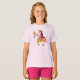 Diseño con ilustracion de chica con vestido rosa usando una corona dorada montando poni blanco