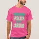 El color es muy bonito al natural, como la foto. El tejido es suave y de buena calidad. Sin defectos en el tintado, ni hilos sueltos o descosidos. Bien la impresión. Los bordes de las letras y el dibujo son nítidos, y el color contrasta muy bien con el de la camiseta.