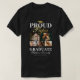 Graduation grandparent t-shirt featuring a graduates mortarboard, 5 photos of your grandchild, the saying "proud papa of the graduate", their name, place of study, and class year.