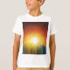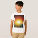 Resplandor dorado de una puesta de sol sobre una ciudad. Este diseño luce realmente efectivo en esta camiseta de niño