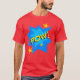 El color es muy bonito al natural, como la foto. El tejido es suave y de buena calidad. Sin defectos en el tintado, ni hilos sueltos o descosidos. Bien la impresión. Los bordes de las letras y el dibujo son nítidos, y el color contrasta muy bien con el de la camiseta.