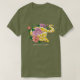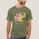 El color es muy bonito al natural, como la foto. El tejido es suave y de buena calidad. Sin defectos en el tintado, ni hilos sueltos o descosidos. Bien la impresión. Los bordes de las letras y el dibujo son nítidos, y el color contrasta muy bien con el de la camiseta.