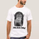 Una imagen de un chimpancé con una mirada de reflexión y el subtítulo abajo, "cuál era Darwin que pensaba?" Esto está para el creationist en usted.
