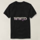 Un diseño simple y significativo con las letras "WWJD" rodeadas de un sutil motivo halo, perfecto para quien quiera reflexionar sobre la pregunta "¿Qué haría Jesús?"