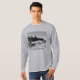 Camiseta Larga de la Manga Gris con imagen de la playa de Windansea en La Jolla CA. y las palabras ¿Qué tiene de bueno eso? impresa en ella.