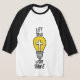 Esta camiseta de manga 3/4 de los hombres tiene un diseño que incluye las palabras "Let Your Light Shine" en un tipo de letra de impresión de estilo Marcador con letras negras que muestran una imagen gráfica de bombilla amarilla más un icono de cruz blanca en el centro con un contorno negro en este tema de citas de escritura basada en la fe. Esta camisa tiene un cuerpo de color blanco o ceniza con mangas y collarín a juego con los picos de la parte inferior y de la manga de doble aguja para una larga duración.