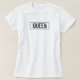 Camiseta Reina. Camisa de color claro con la palabra Reina en texto oscuro rodeada por una caja negra