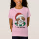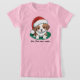 La camiseta tiene un adorable cachorro caricaturizado con ojos grandes y expresivos y orejas disquetas. El cachorro está sentado con una expresión ligeramente maliciosa pero inocente. Debajo de la imagen, en un lúgubre texto a mano, dice: Querido Santa, fue un accidente.