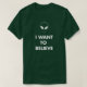 Esto es una camiseta inspirada los X-Ficheros con una cabeza extranjera y las palabras "que quiero creer"