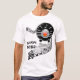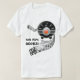Camiseta con una asombrosa radio de estilo Art Déco en rojo, negro y plata lanzando notas musicales en un equipo agitador y con el título "(Su nombre o estación favorita) Rocks!"