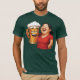 Cette image humoristique et colorée représente une femme joyeuse en t-shirt rouge posant avec un verre de bière anthropomorphique, affichant un grand sourire et un signe de victoire. Les deux personnages partagent un moment complice dans une ambiance décontractée, festive et chaleureuse.