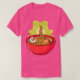 El color es muy bonito al natural, como la foto. El tejido es suave y de buena calidad. Sin defectos en el tintado, ni hilos sueltos o descosidos. Bien la impresión. Los bordes de las letras y el dibujo son nítidos, y el color contrasta muy bien con el de la camiseta.