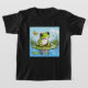 Adorable sapo o sapo sentado en una plataforma de lirio rodeado de mariposas con su reflejo en el agua. Rana personalizado adorable al estilo de un libro de historietas.
