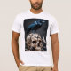 La impresión es perfecta y además es un diseño genial. La calidad y la talla de la camiseta están muy bien. Aparte de ser un buen diseño, la impresión es excelente.
