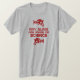 La ciencia es tan impresionante. La ciencia nos da cosas como peces brillantes en la oscuridad, viajes espaciales y pistolas de rayos. Texto rojo en una camisa gris.